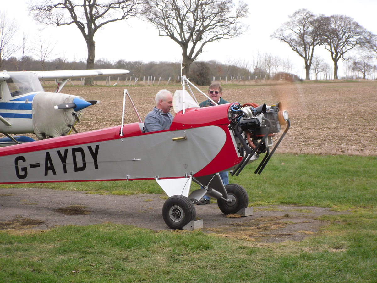 First run of restored Luton Minor LA4 G-AYDY of new VW 1830 cc engine with new manifolds, carburetor, carb heat and electronic ignition. No prizes to find the essential flight missing bit which is now close! The rev counter failed and only showed 25% of actual rpm. Start was only achieved using full choke and full throttle so can hardly be called a single pilot operation. A bit of adjustment clearly needed.